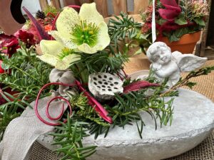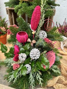 Grabschmuck in verschiedensten Farben und Formen – immer wieder frisch gestaltet.